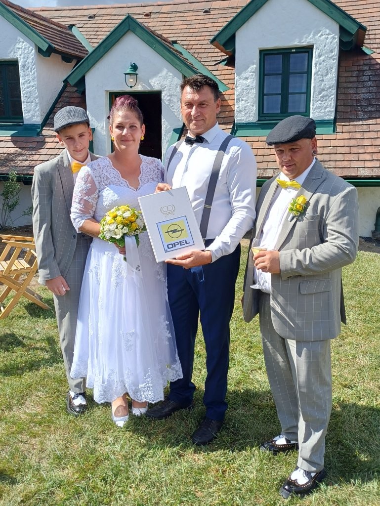 Am 06. 09. starteten wir zu unserer zweiten Ausfahrt zum Heurigen Loiskandl im 50er-Jahre-Outfit. Vor Ort wurden wir vom Hausherrn Josef Loiskandl in die Anforderungen des Weinbaues und die Herstellung eingeführt. Im Anschluss durften wir die unterirdischen Weinkeller besichtigen und eine Weinverkostung vornehmen. Danach fuhren wir eine kurze Strecke zum Kellerstöckl des Weingut Burger. Und jetzt pass auf!! Diese Besichtigung und kleine Ausfahrt diente eigentlich nur als Ablenkung für ein ganz besonderes Ereignis, nämlich der standesamtlichen Hochzeit von Sabrina Rath und Stefan Horvath!! Sie sind schon seit 15 Jahren ein Paar und haben sich im letzten Winter dazu entschlossen hier bei der Herbstfahrt zu heiraten. Diese Überraschung ist ihnen wahrlich gelungen. Dass die meisten natürlich komplett aus dem Häuschen waren ist verständlich, denn nur ein ganz kleiner Personenkreis war eingeweiht und um hier bis zum heutigen Tage dichtzuhalten war alles andere als leicht. Nun standen wir hier im Garten des Kellerstöckls und Werner Pirker agierte als Hochzeitslader, bevor die standesamtliche Trauung, durchgeführt durch den Hollabrunner Standesbeamten Herrn Josef Goll, begann. Als Trauzeugen fungierten Silvia und Anton Siedl, Sabrinas und Stefans Sohn Tobias überreichte die Ringe. Nach dieser herzlichen Zeremonie durften wir mit dem Hochzeitspaar anstoßen und unsere Glückwünsche übermitteln, natürlich gab es auch ein Gruppenfoto mit allen Feiergästen. Ganz besonders freute es uns, dass die beiden im Kreis des Alt-Opel-Stammtisches heiraten wollten.