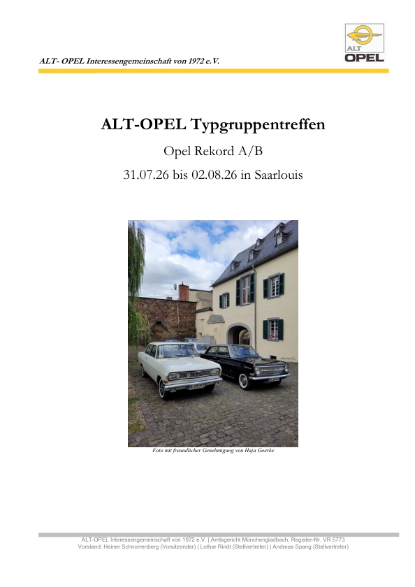 wir freuen uns, Euch zum ALT-OPEL IG Typgruppentreffen für Opel Rekord A/B Fahrzeuge einladen zu dürfen.
