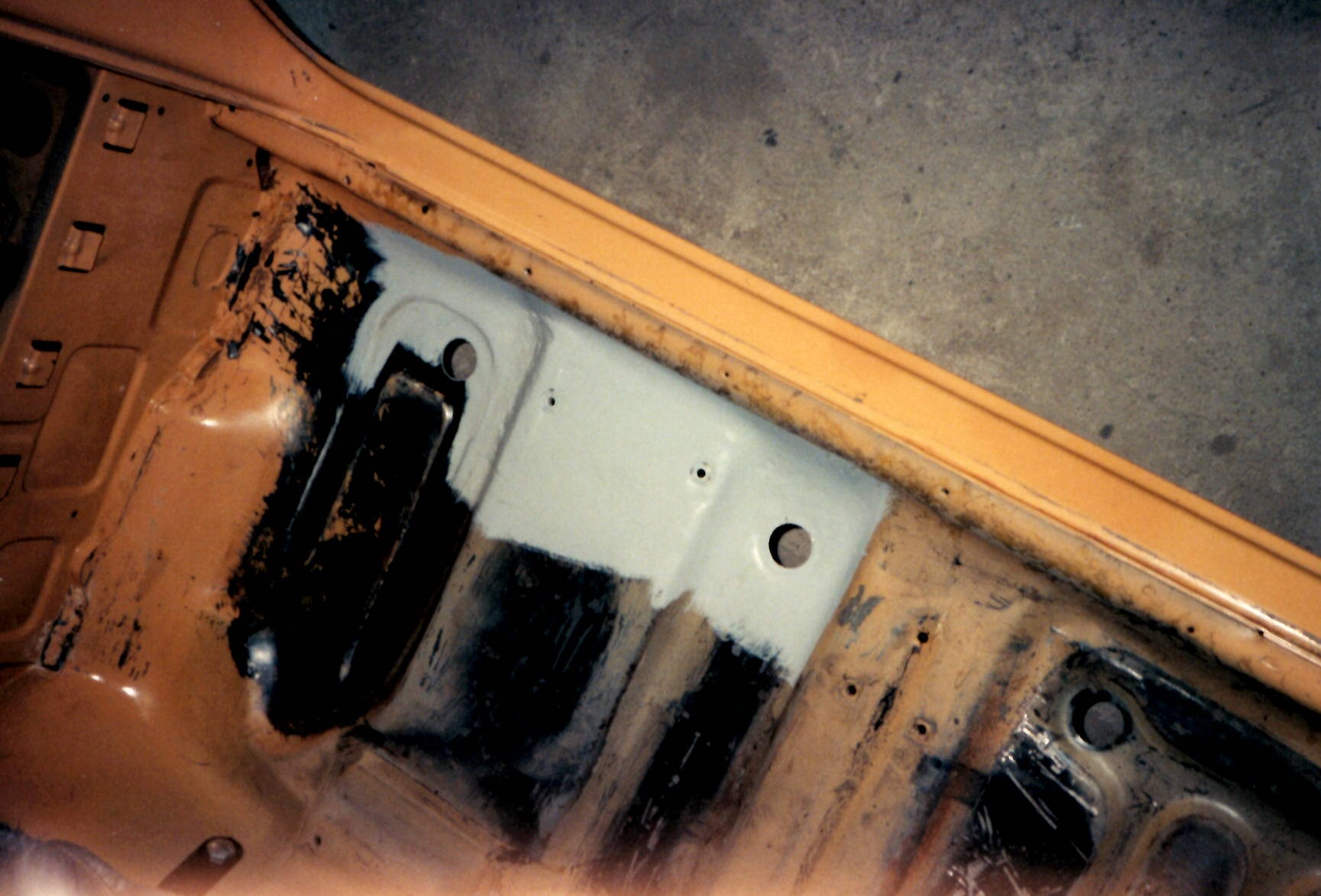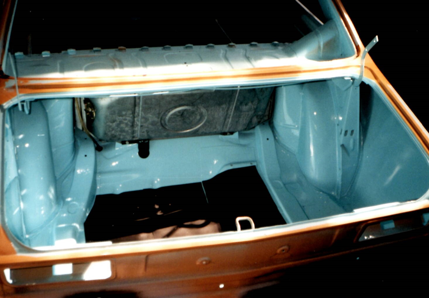 Im Vergleich zu früher ein gewaltiger Unterschied, wie sich die Preise bei diversen Modellen nicht nur bei Opel, auch bei anderen Fabrikaten, im Laufe der Jahre erhöht haben. Nun, gut… Weiter geht es mit dem Kadett, die neuen Kotflügel wurden mit dem Luftleitblech angepasst und schon konnte ich das Luftleitblech einschweißen. Alles wurde grundiert, und ich konnte den Motor natürlich alleine mit Hilfe eines Motorhebers ausbauen. Da mein Bruder bis hierhin noch nicht geholfen hatte, durfte er jetzt schön alles säubern damit wir den Vorderwagen Füllern (grundieren) konnten. Zwischendurch habe ich mich auch um den Motor gekümmert, der zerlegt wurde und diverse Neuteile bekam. Nach ein paar Tagen wurde dann der Vorderwagen zum Lackieren in unserer Halle vorbereitet. Mit glänzendem Ergebnis… Nach einer Woche haben wir dann begonnen den Motor und die Vorderachse wieder einzubauen. Nun konnten die Türen eingepasst werden, die ja ebenfalls beim Diebstahl beschädigt wurden. Bei der Fahrertür, die sonst recht ordentlich aussah, konnte ich einen Teilersatz von einer anderen Tür übernehmen und nachher Verzinnen, sehr gut gemacht… Das Heckabschlussblech musste ebenfalls instandgesetzt werden, aber das war nur eine Kleinigkeit… Weiter ging es dann mit den Radläufen hinten, die im Radhaus und an der Außenkante rausgetrennt und durch damals noch bei Opel vorrätige Reparaturbleche erneuert wurden. Auch diese habe ich verzinnt, und die Seitenwände mit wenig Spachtel ausgeglichen. Dann musste ich ja noch das Blech von der Schaltkonsole ändern, da dieser Kadett ein Automatikgetriebe hatte. Eine Krankheit beim Kadett C ist auch die beidseitige Sitzverstrebung, die ich auch instandgesetzt habe. Die Bleche gibt es heute noch im Zubehör oder z. B bei der Firma Leidinger Tuning. Nun konnte auch der Innenraum zum Lackieren vorbereitet werden, was immer eine Menge Zeit in Anspruch nimmt, da ich erst den Innenraum lackiert habe und für den Kofferraum den Innenraum wieder komplett zukleben musste… Tä Tä!!! …Auch das war erledigt und mein Bruder strahlte …! So konnten wir schon mal den Innenraum mit Dämmmatten auskleiden, denn der Lackierer erwartete den Kadett schon voller Vorfreude und war begeistert, was wir an Arbeit schon erledigt hatten.