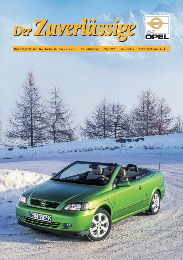 … holt wortwörtlich nochmal den Winter ins Auto. Es beweist, dass ein Cabriolet durchaus auch im Winter artgerecht bewegt werden kann. Zum 25. Jubiläum des Astra G Cabriolets beleuchten wir die Typgeschichte der Bertone-Coupés und -Cabrios ab Seite 22.