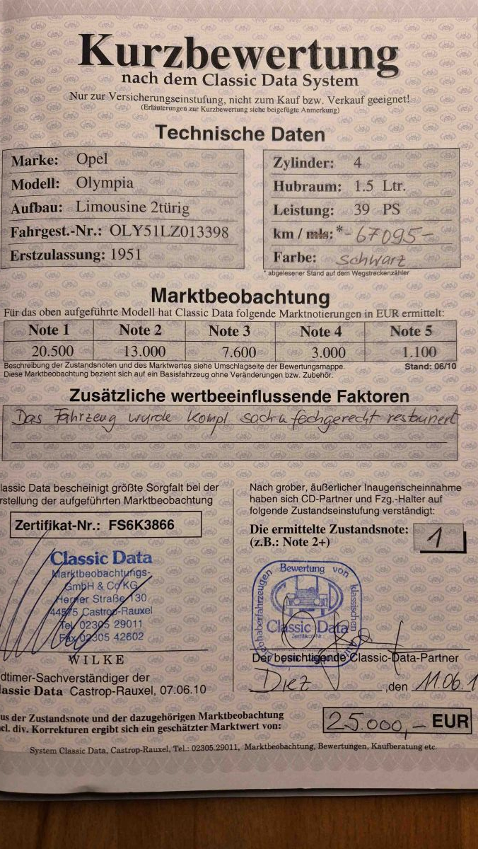 Das Auto wurde in 2010 von Fachwerkstatt bis zur letzen Schraube zerlegt und neu aufgebaut. Dokumentation und Wertgutachten vorhanden. Für ein solches Auto ein ungewöhnlich großer Aufwand. Deshalb habe ich es damals gekauft. Lief immer besten. Gern gesehens Auto bei Oldtimerralleys. Seit 10 Jahren abgemeldet. Daher Standschäden zu beheben. Neue Bremszylinder und Beläge, neue Reifen, neue Batterie, alle Öle wechseln. Kurbelwelledichtung undiicht, kann man aber lassen. Alle Instrumente und Klappwinker funktionieren. Am Auto ist alles „neu“.