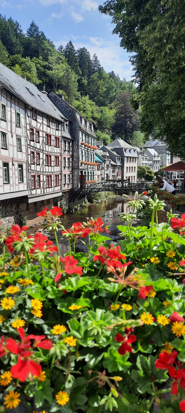 Monschau ist der Inbegriff des romantischen Fachwerkstädtchens, hier fühlt man sich in vergangene Zeiten zurückversetzt. Die Burg stammt aus dem 12. Jahrhundert. Die Burg und der kleine Ort wurden mehrfach erobert und zerstört. Im Dreißigjährigen Krieg blieben Monschau und das Umland aber weitgehend verschont. Fernab von Kriegswirren und Durchgangsstraßen begann der wirtschaftliche Aufstieg zu einer der bedeutendsten Tuchmacherstädte des Rheinlandes. Aufgrund ihrer hervorragenden Qualität waren die Monschauer Tuch weltberühmt.