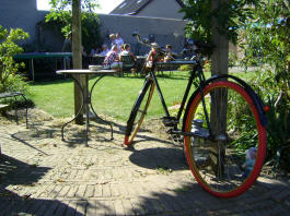 Zurück in Deurne haben wir uns im Garten von Jacqueline und Fred noch angenehm unterhalten, über 30 sehr schöne historische Fahrrad-Kilometer. Musik von einem alten Plattenspieler machte das historische Bild komplett.