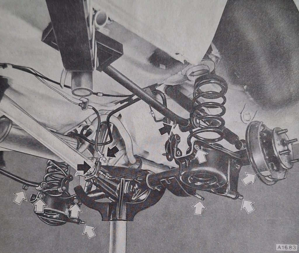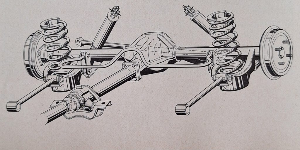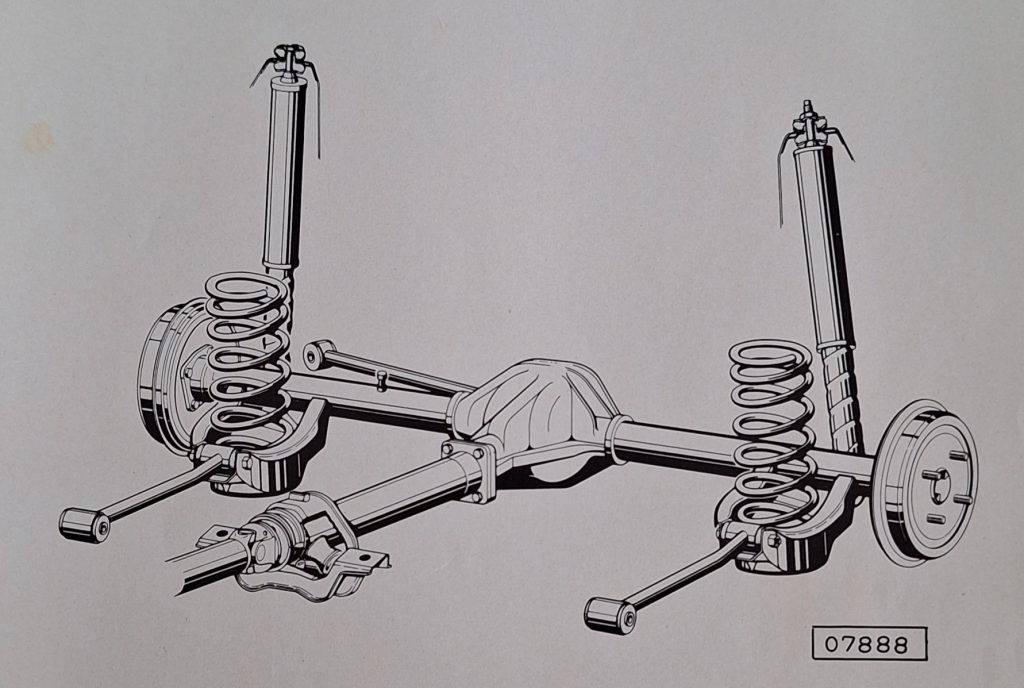 Bei dem Modell Caravan oder auch Kadett Kombi sieht es etwas anders aus. Hier stehen die Stoßdämpfer schräg zur Hinterachse.