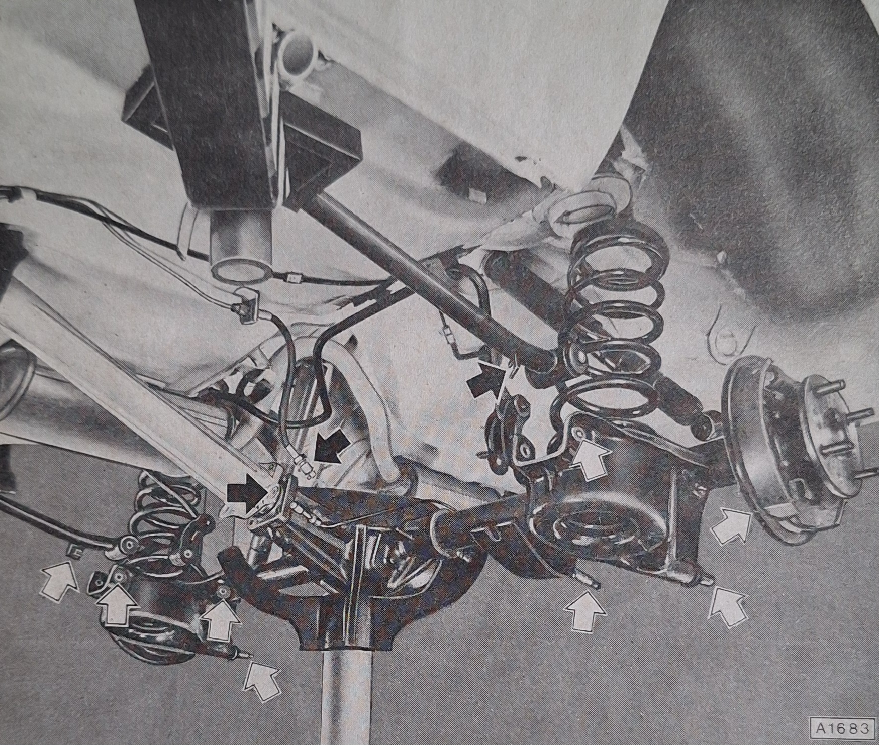 Bei dem Kadett-Coupé stehen die Stoßdämpfer senkrecht, also gerade nach oben, dass bei Eintauchen der Hinterachse die Dämpfer gerade stehen bleiben.
